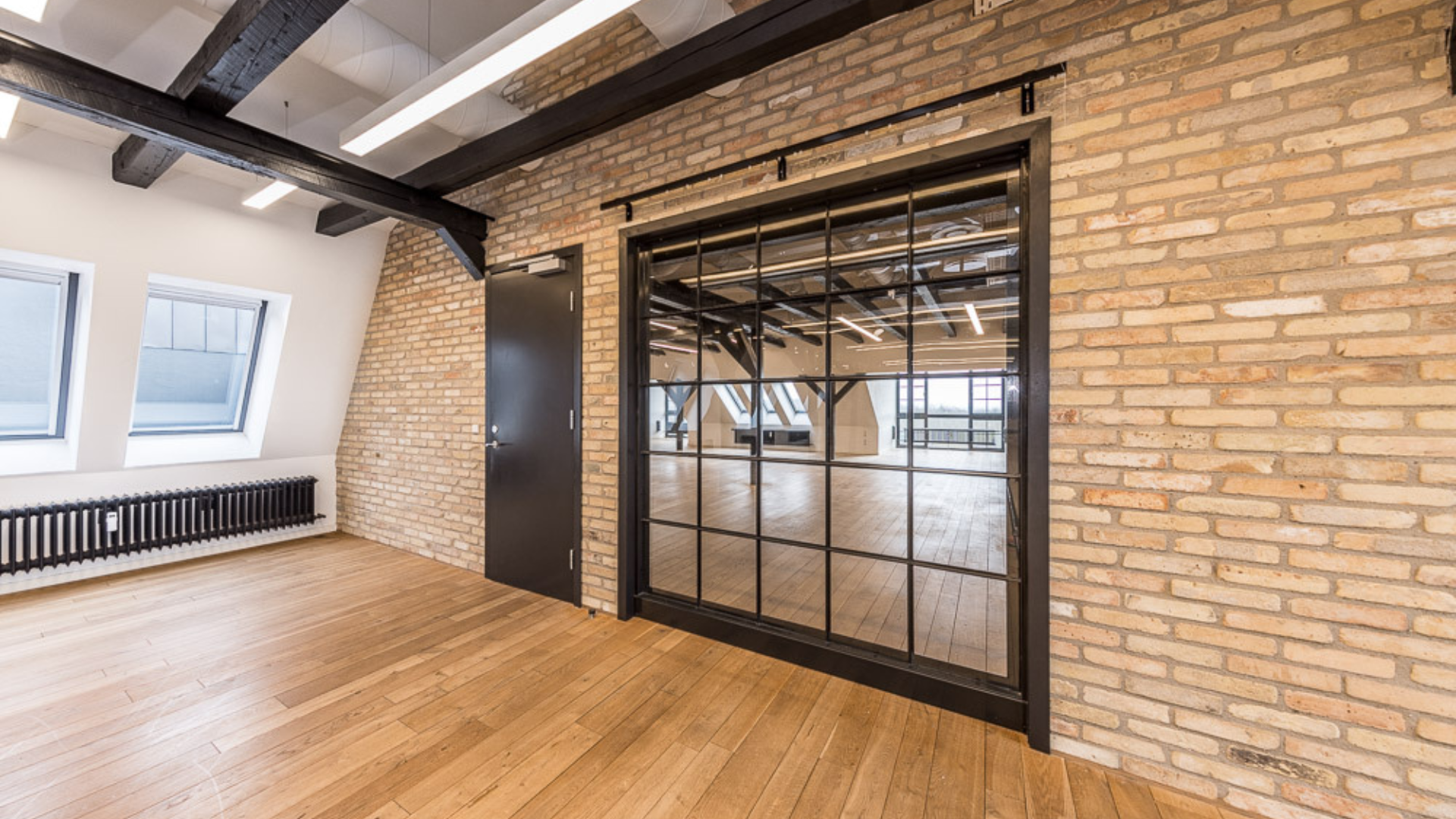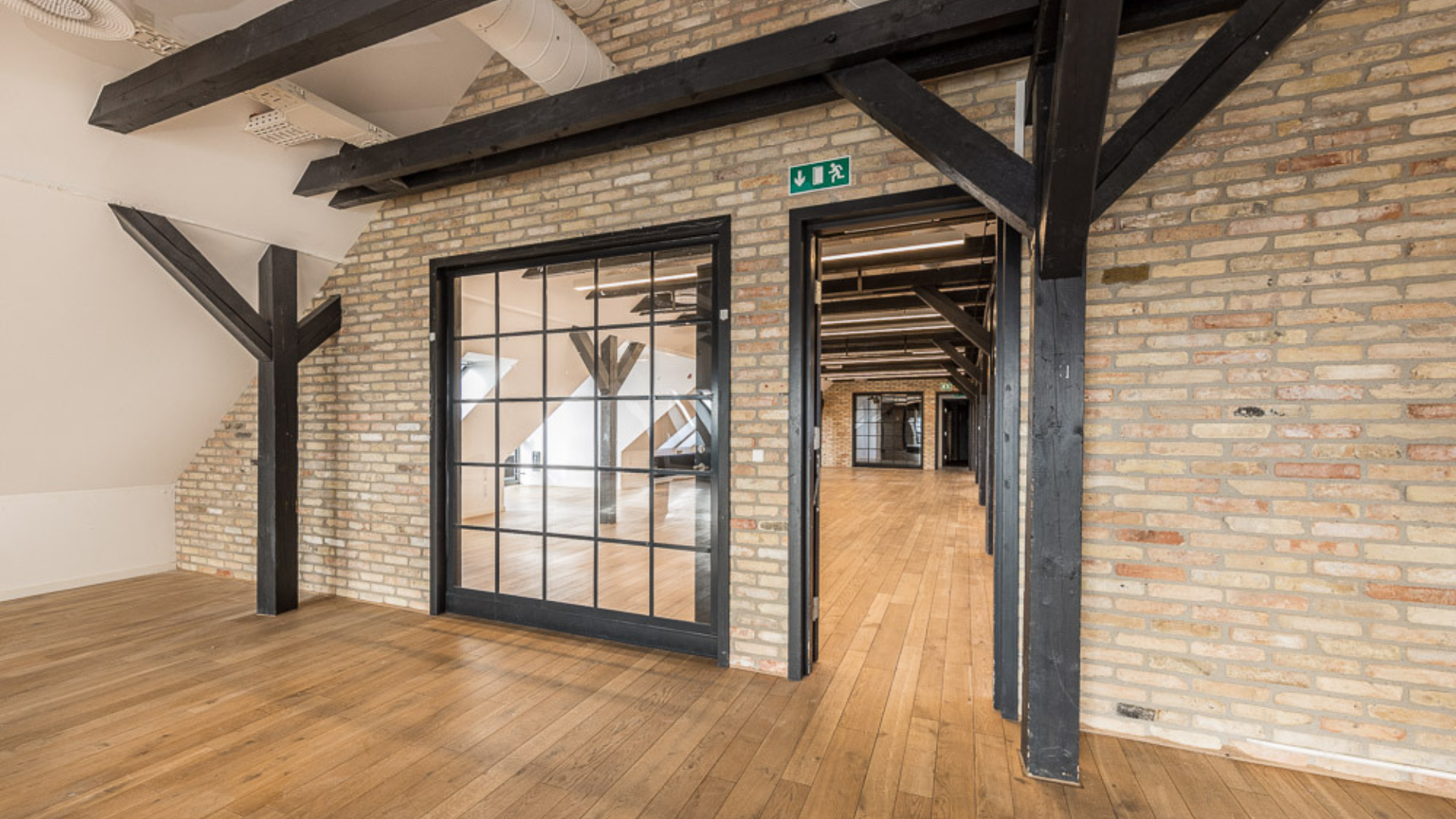 På Artillerivej 86 flytter din virksomhed ind i et lejemål kendetegnet ved en rå og industriel stil, der leder tankerne tilbage til den oprindelige trikotage fabrik.