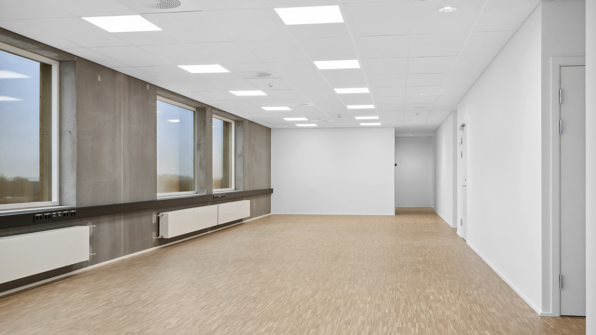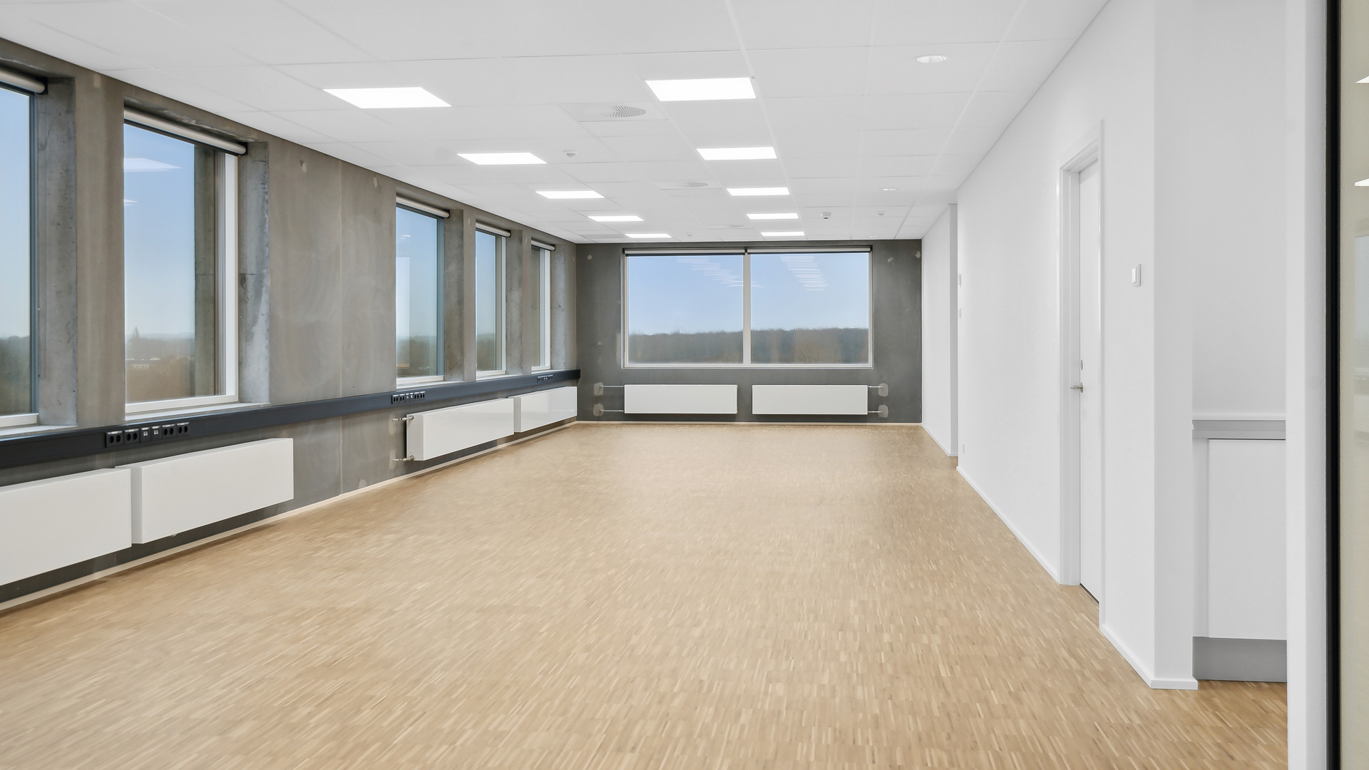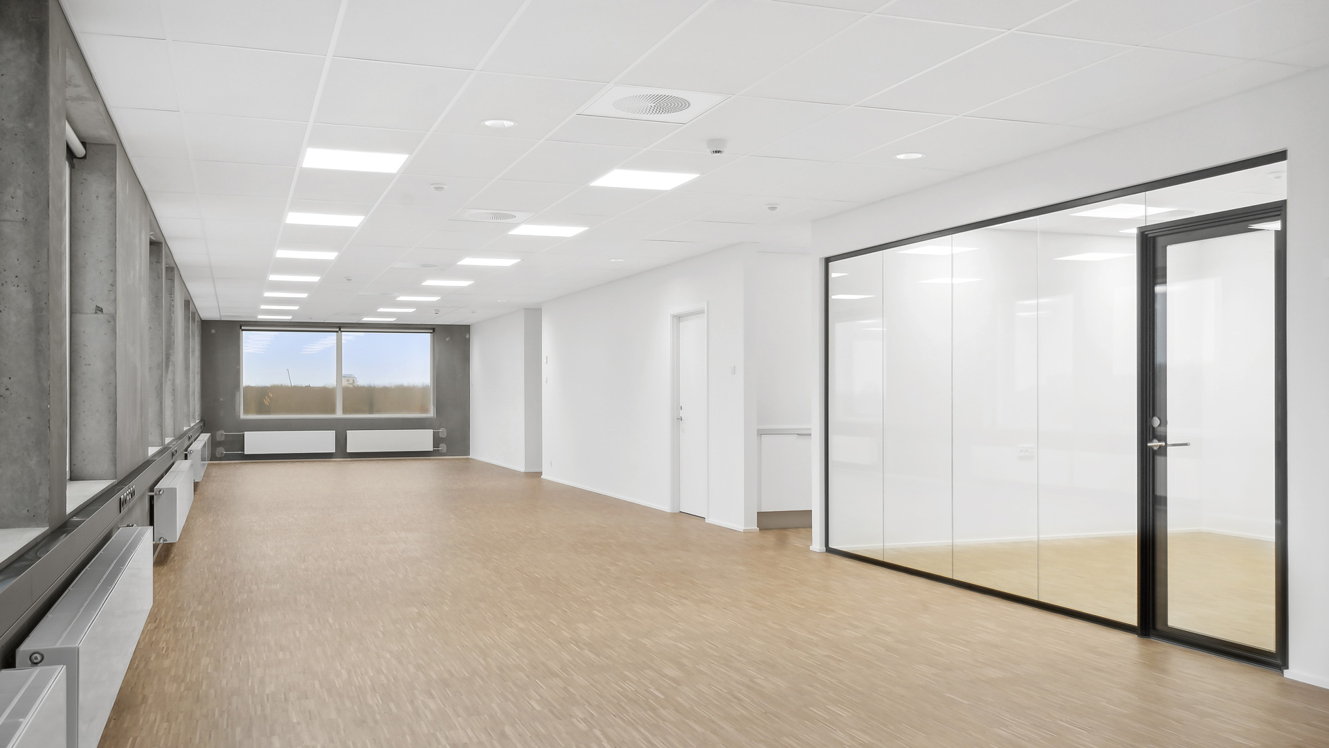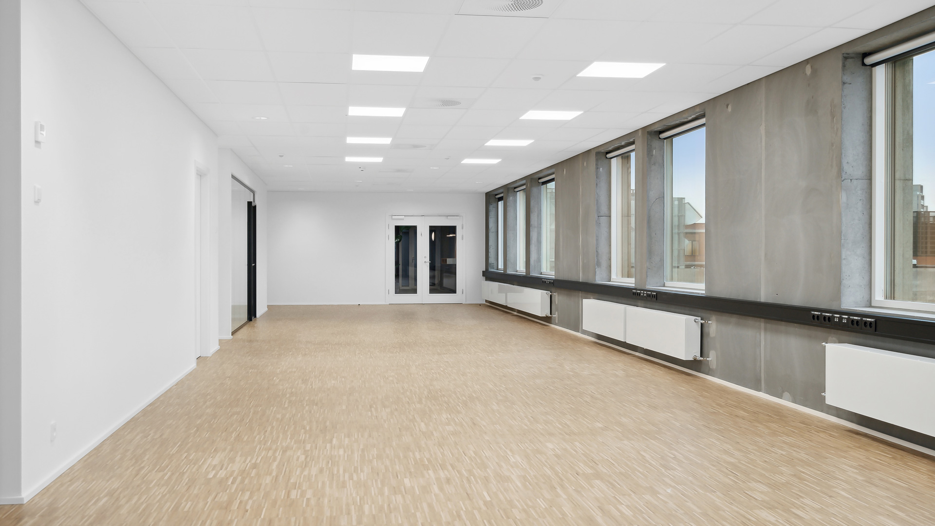 Fra et indbydende ankomstområde med fælles digital reception kan du tage trappen eller elevatoren op på kontorhusets 5. sal. Her finder du et lyst kontor med store vinduer, akustiklofter og lyse trægulve der tilsammen skaber god akustik og godt indeklima. Din virksomhed kan på dette lejemål tilgå eget tekøkken, toiletfacilliter og ekstra lokale til møder eller aflukket kontor.