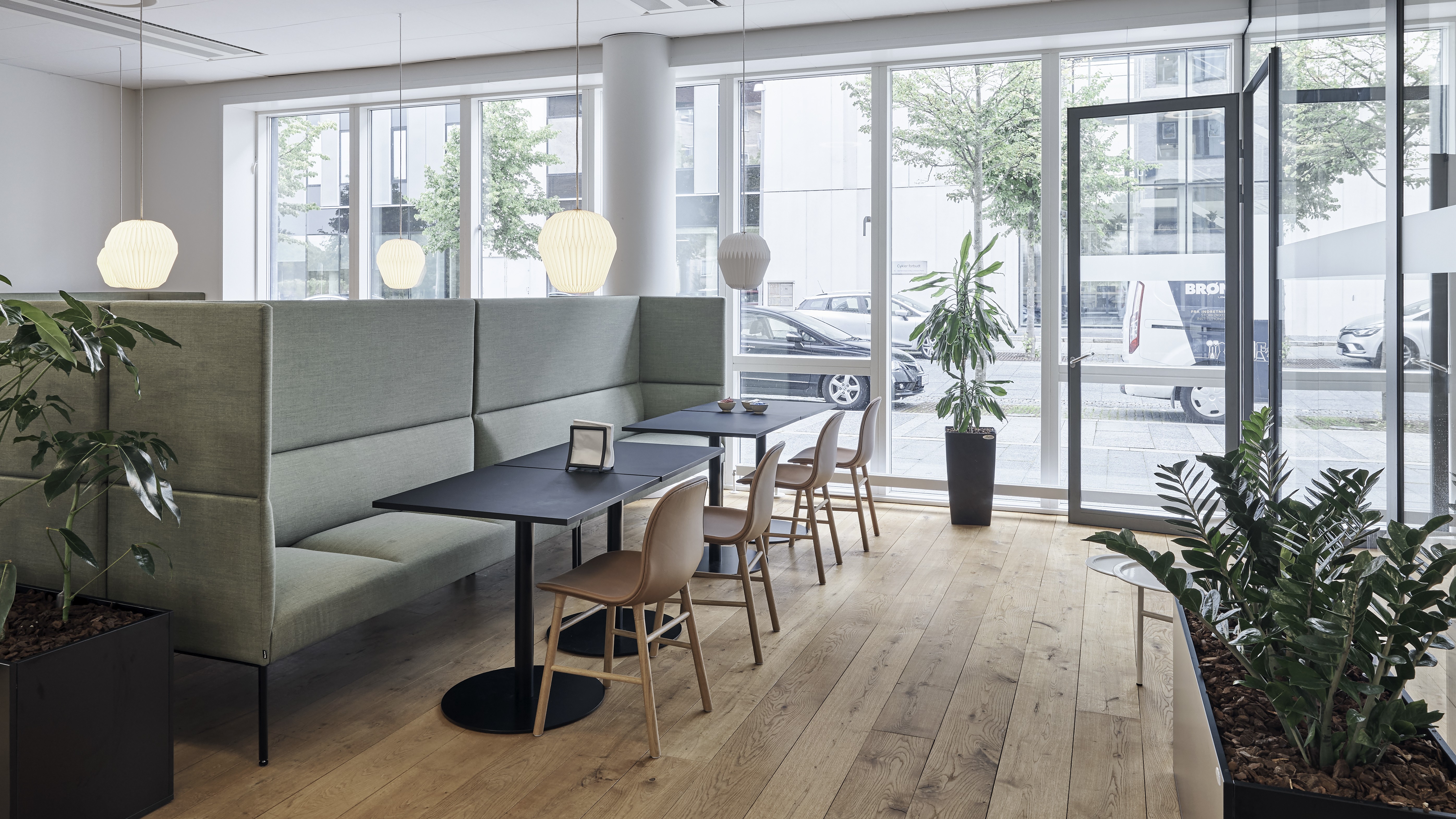 Med lounge og touch down spaces opnås en bredere pallette af arbejdsrammer, som understøtter et mere dynamisk arbejdsliv og forbedrer arealeffektiviteten.