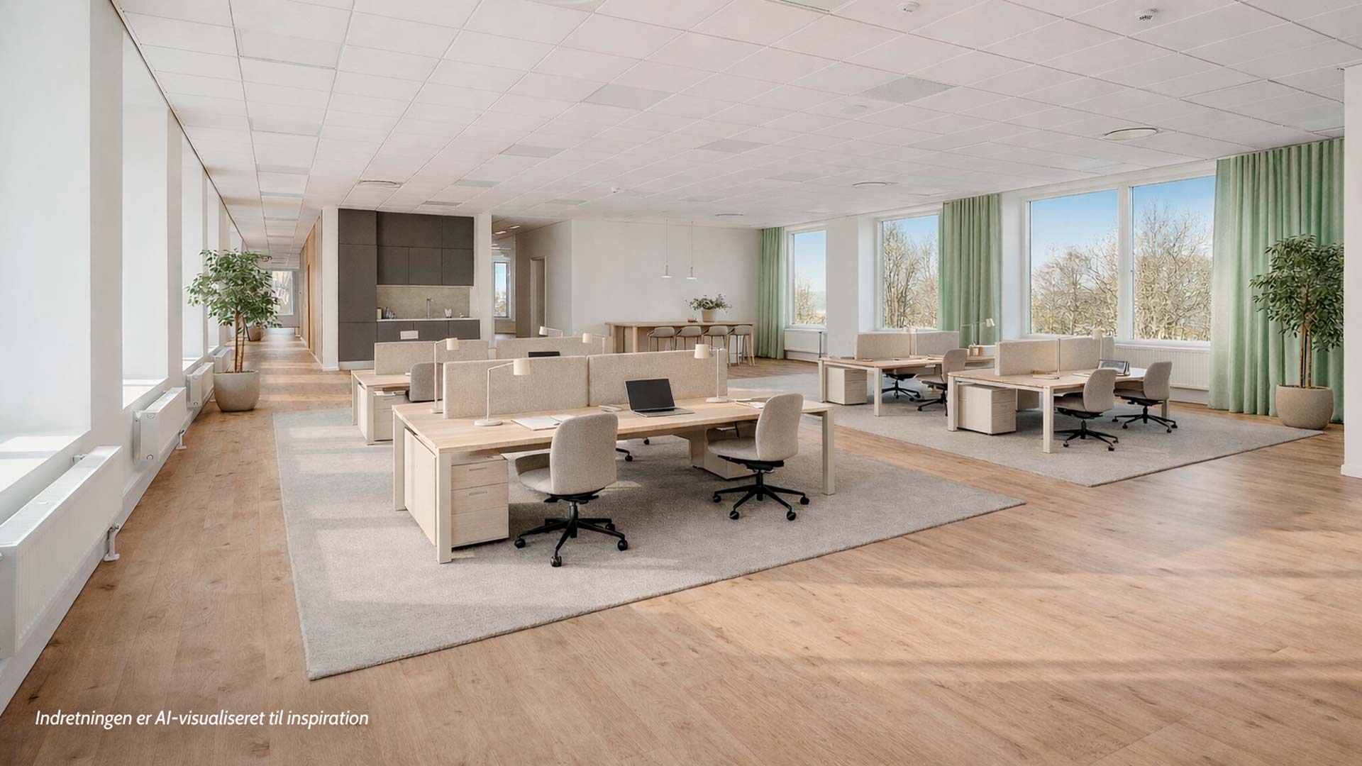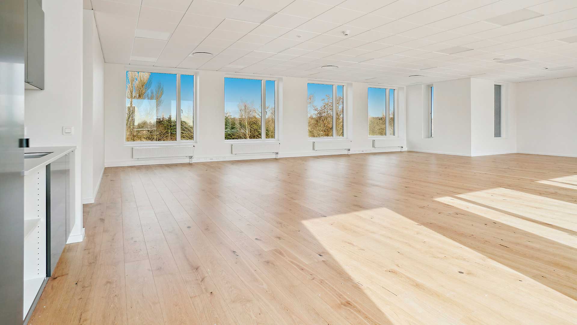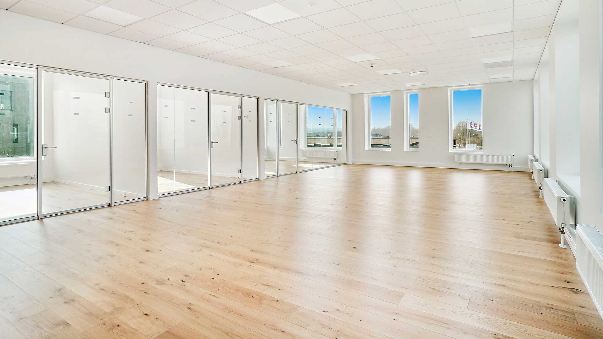 I dette lejemål får I masser lys fra de store vinduespartier, mens materialevalget med plankegulve, hvidmalede vægge og akustiklofter understøtter et professionelt og stilrent udtryk. Her er ideelle rammer for en moderne arbejdsplads med mulighed for reception, klassiske kontorarbejdspladser, projektzoner og attraktive fællesområder. Planløsningen indeholder desuden tekøkken, toiletter og tre aflukkede mødelokaler.
