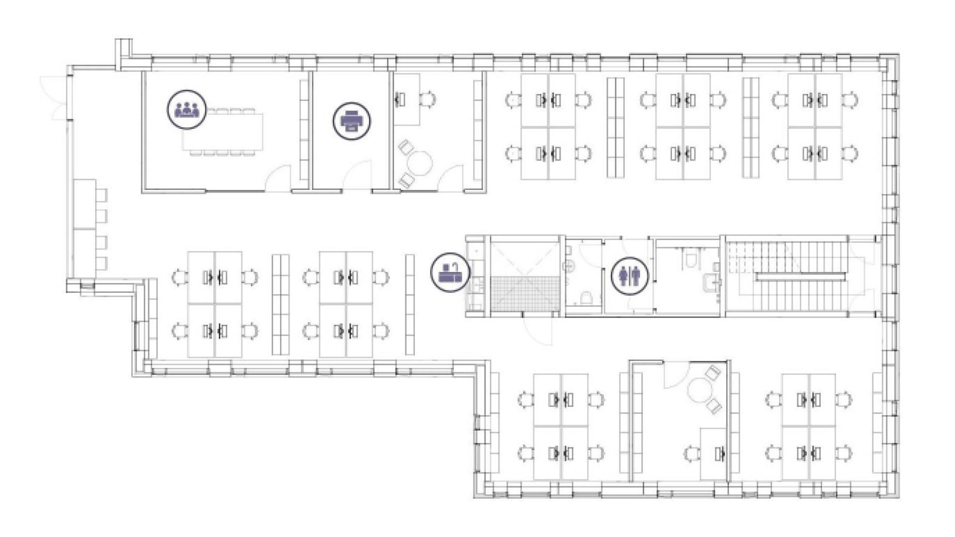 Her er ideelle rammer for en moderne arbejdsplads med storrumskontor samt tre aflukkede rum, der kan bruges som mødelokaler eller private kontorer. Lejemålet er desuden fuldt udstyret med eget tekøkken og toiletfaciliteter.