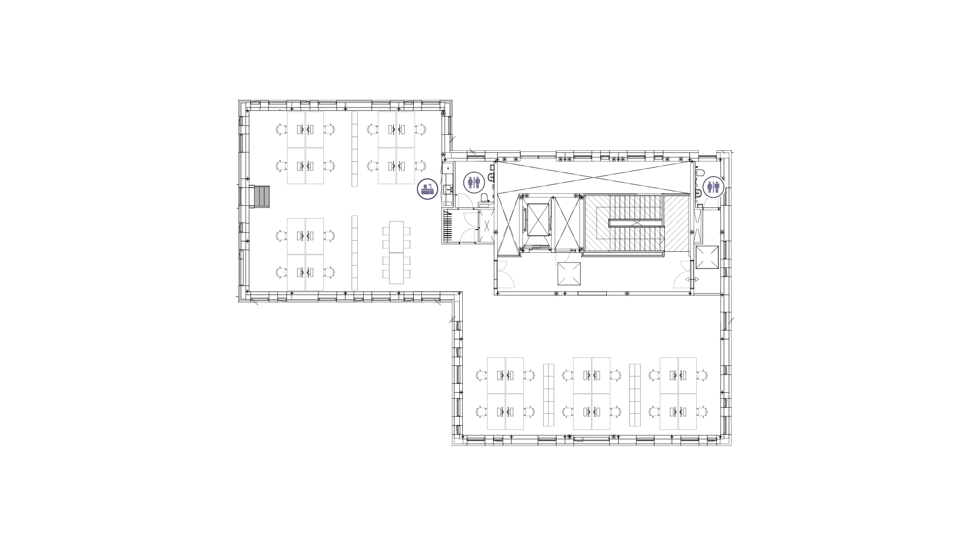 Med lounge og touch down spaces opnås en bredere pallette af arbejdsrammer, som understøtter et mere dynamisk arbejdsliv og forbedrer arealeffektiviteten.