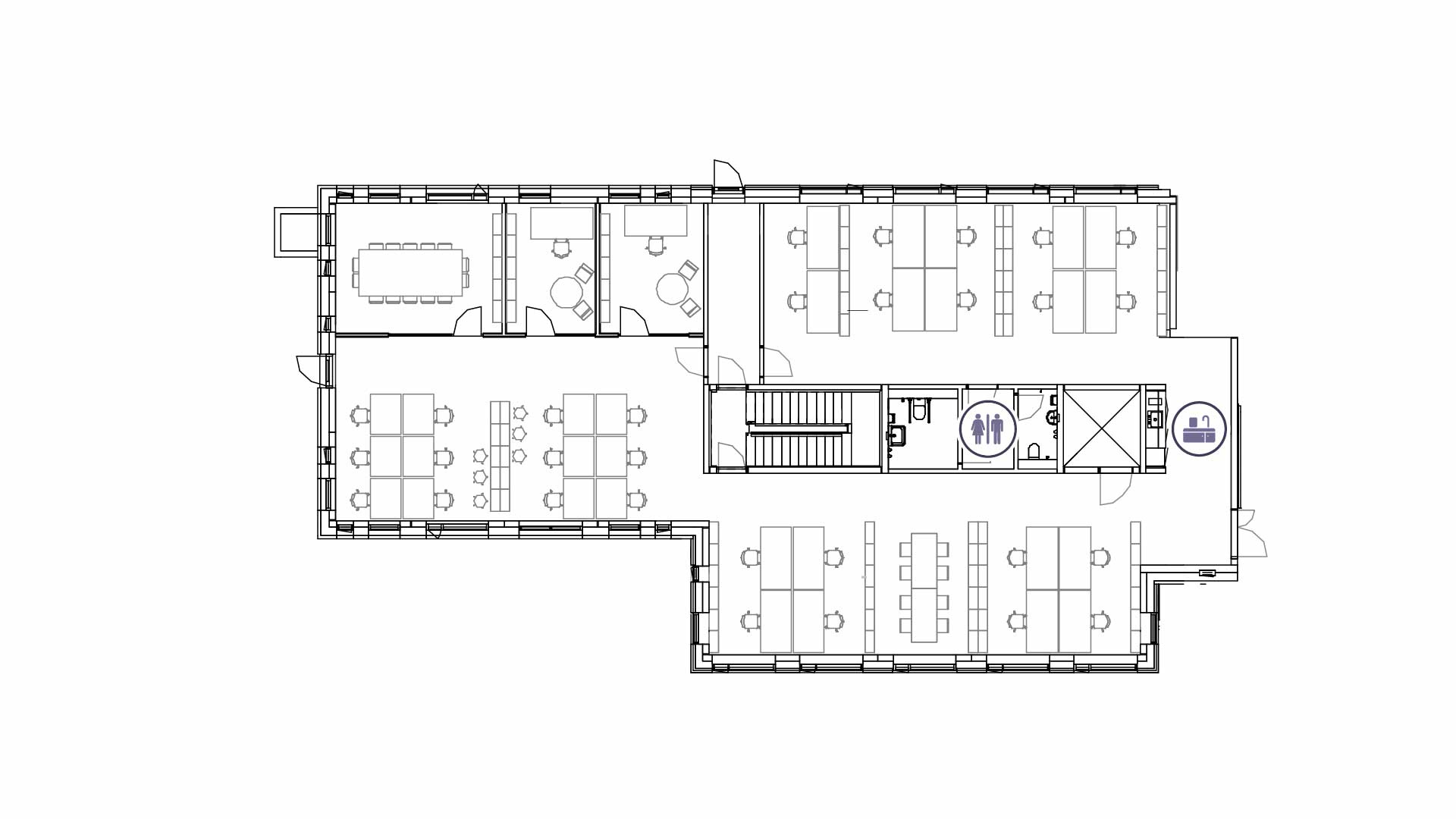 Lejemålet består at et storrumskontor, hvor der er indrettet arbejdspladser, spisepladser og longeområder. Dertil hører tre aflukkede lokaler, som kan bruges til kontorer eller mødelokaler. Lejemålet er desuden udstyret med eget tekøkken samt toiletfaciliteter.