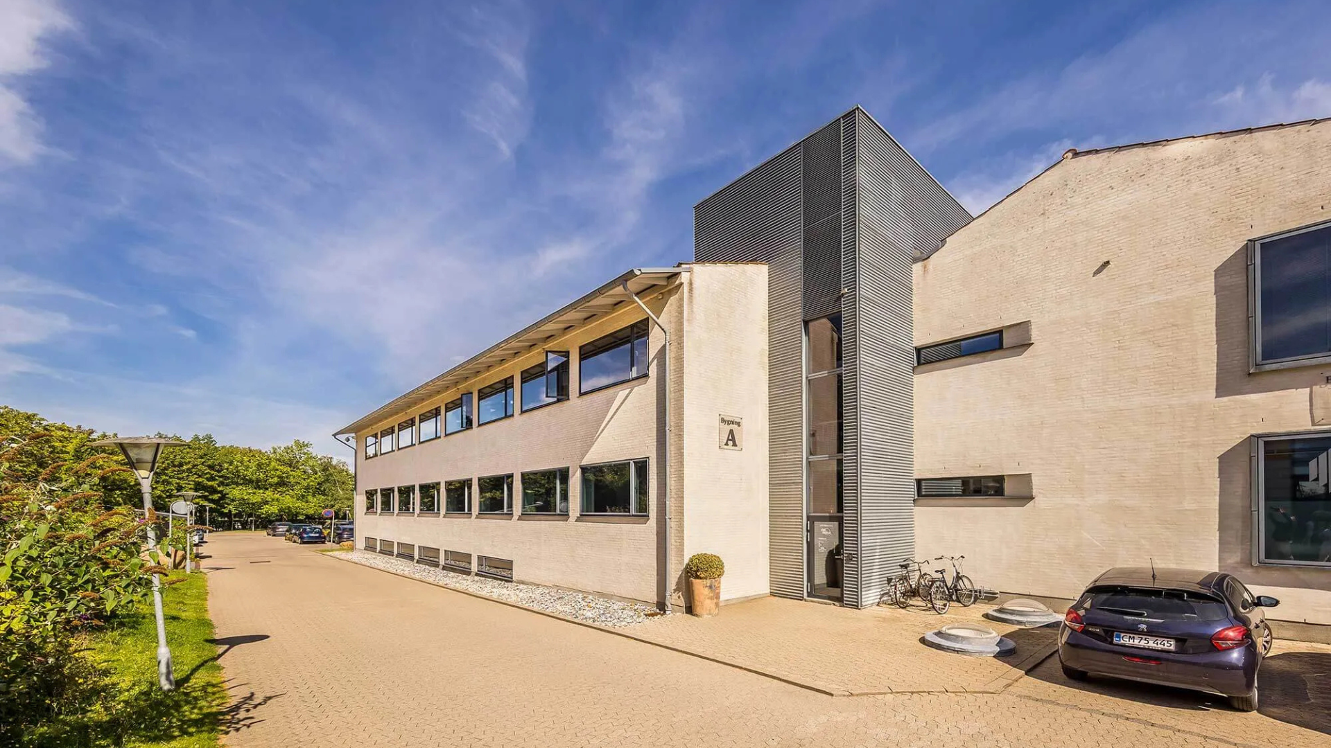 Stor parkeringsplads tæt på kontorhusets hovedindgang gør det nemt at finde en plads både til bilen og cyklen.