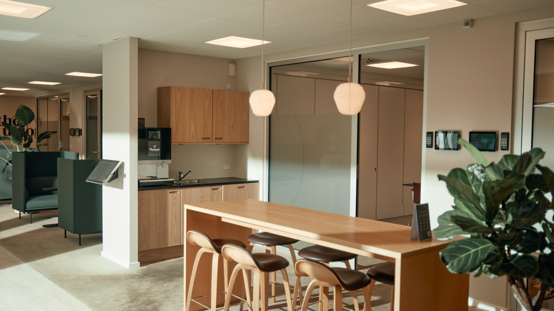 Med lounge og touch down spaces opnås en bredere pallette af arbejdsrammer, som understøtter et mere dynamisk arbejdsliv og forbedrer arealeffektiviteten.