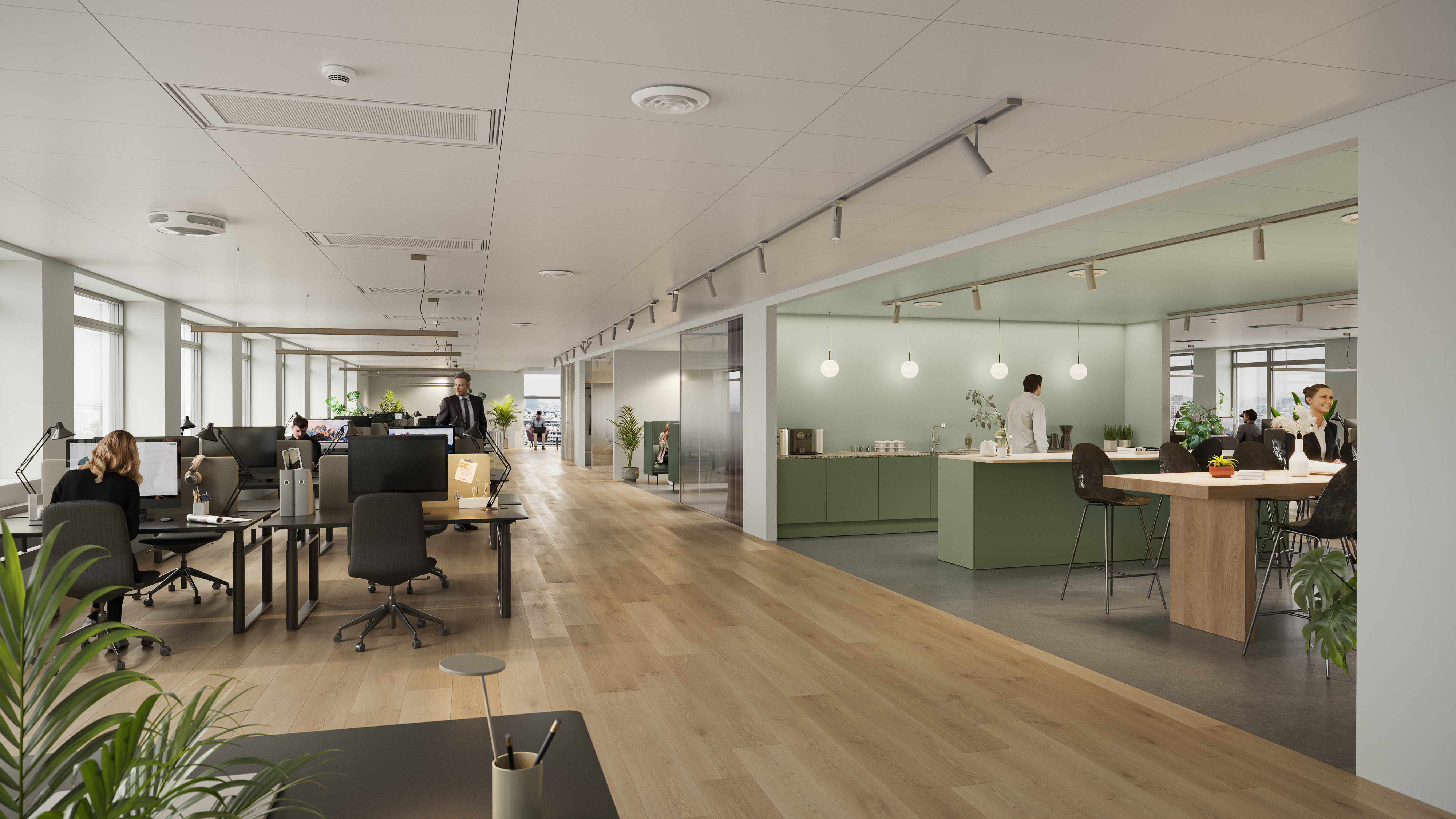 Med lounge og touch down spaces opnås en bredere pallette af arbejdsrammer, som understøtter et mere dynamisk arbejdsliv og forbedrer arealeffektiviteten.