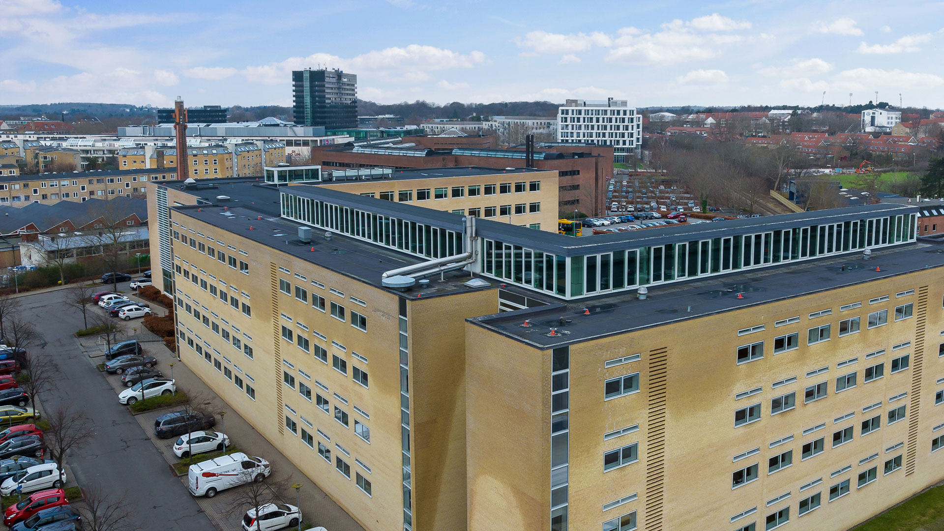Stor parkeringsplads tæt på kontorhusets hovedindgang gør det nemt at finde en plads både til bilen og cyklen.
