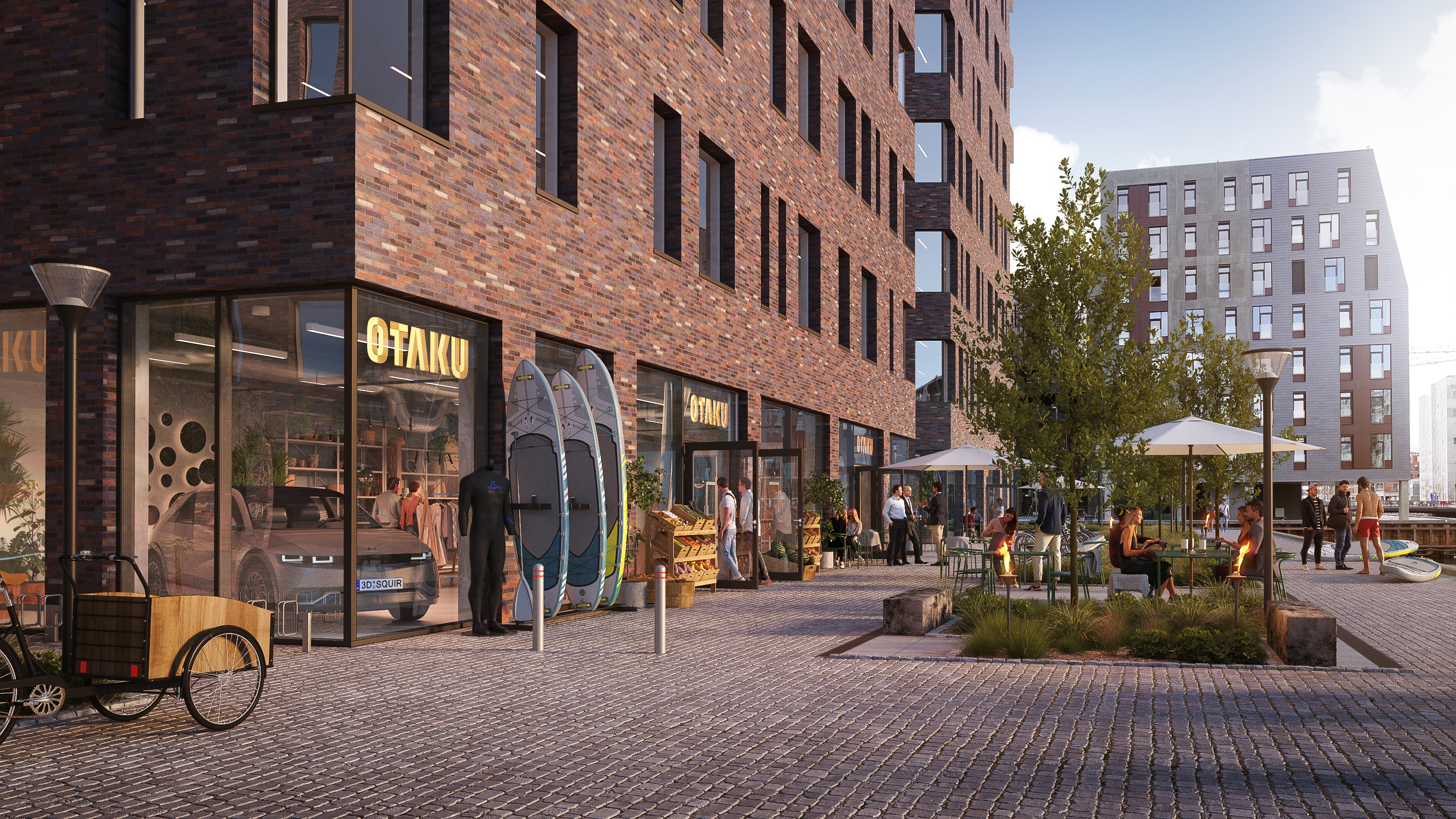 Med en unik placering ved kanalerne og synlighed fra den gennemgående boulevard, er dette lejemål flot eksponeret.