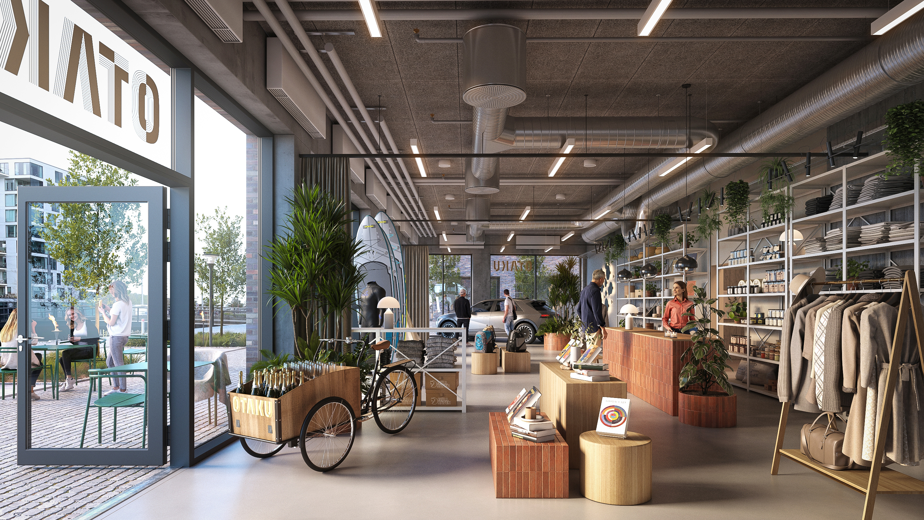 I Pakhusene på Aarhus Ø er der netop kommet et skønt stue-lejemål til leje. Lejemålet har tidligere huset både butik og café, så her er det næsten kun fantasien, som sætter grænsen.
