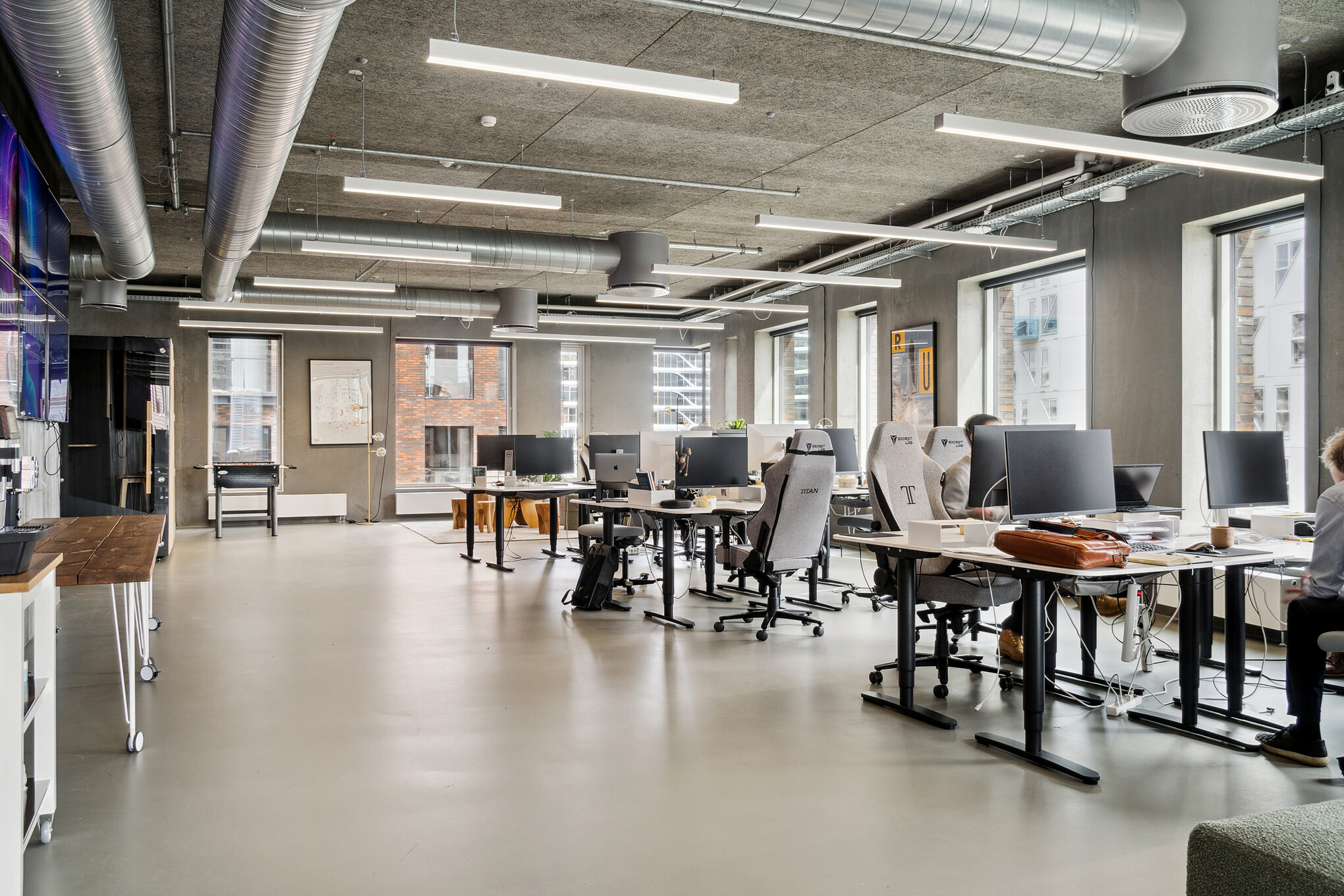 Fra ankomstområdet kan du tage elevatoren eller trappen op på husets 8. sal, hvor du finder et stort og lyst lejemål. Fælles for alle kontorerne i huset er, at de er lavet i materialer af høj kvalitet og med gennemgående urban stil, der bl.a. kommer til udtryk ved synlige rørføringer og betongulve.