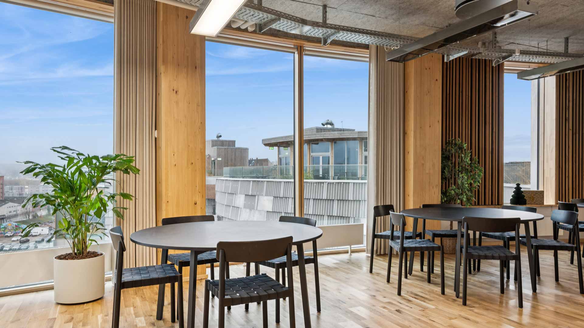 I de flotte lokaler på 7. og 8. sal kan I nyde jeres frokost. Her er det også muligt at afholde events og møder.