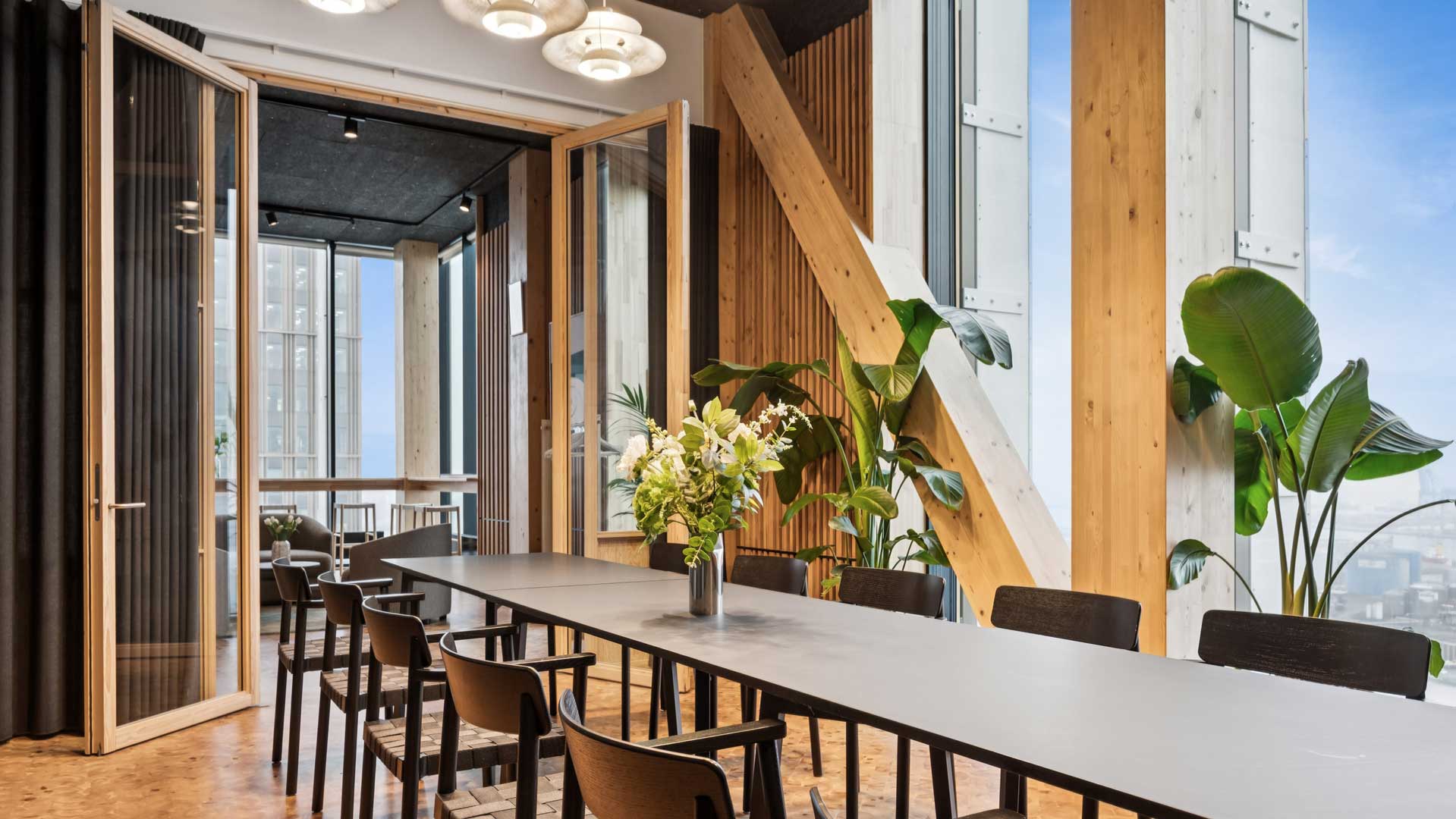Restaurant Syv Ni Tretten holder til på 19. sal om aftenen. Om dagen er udsigtsloungen til jer og jeres gæster.