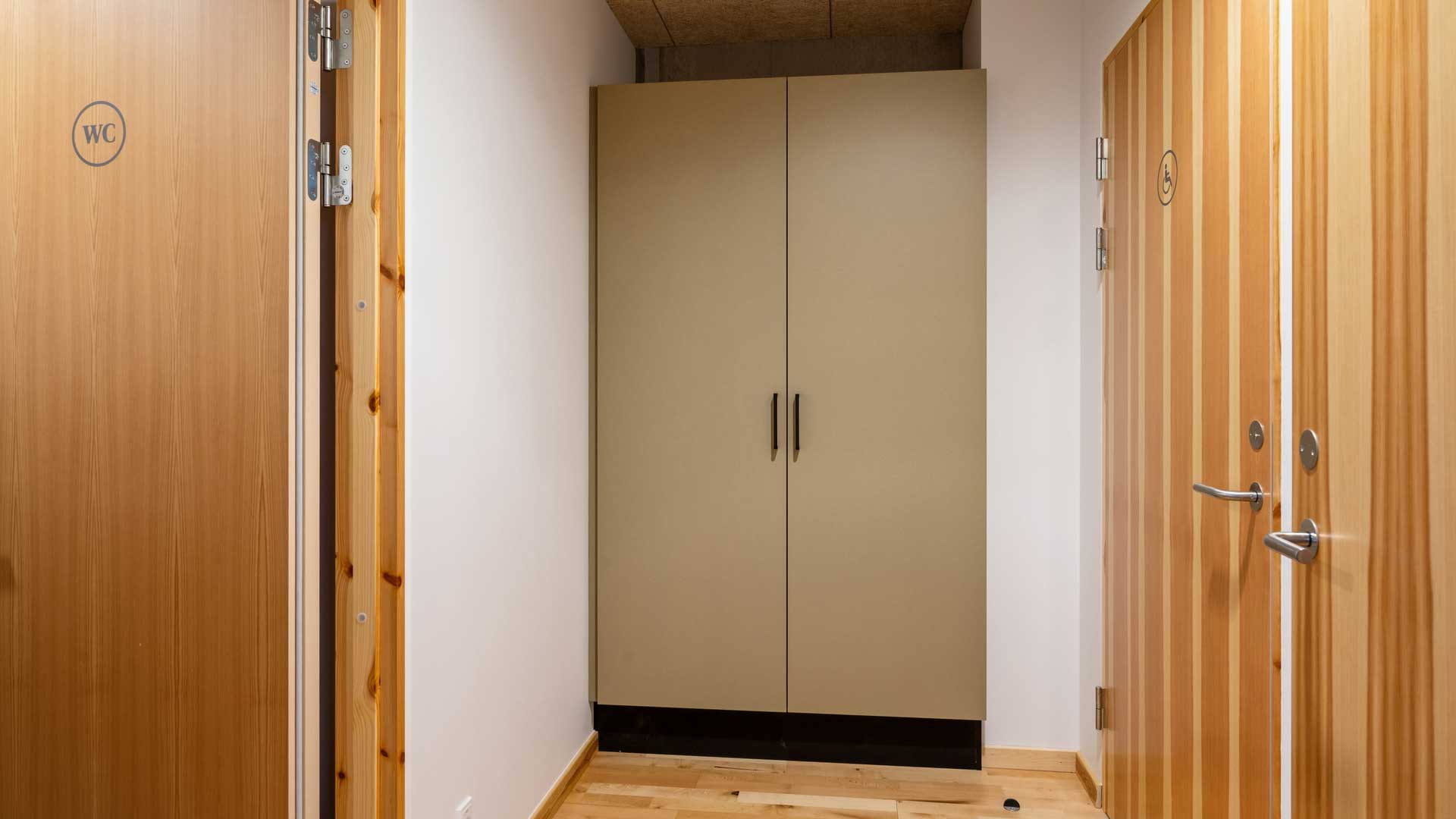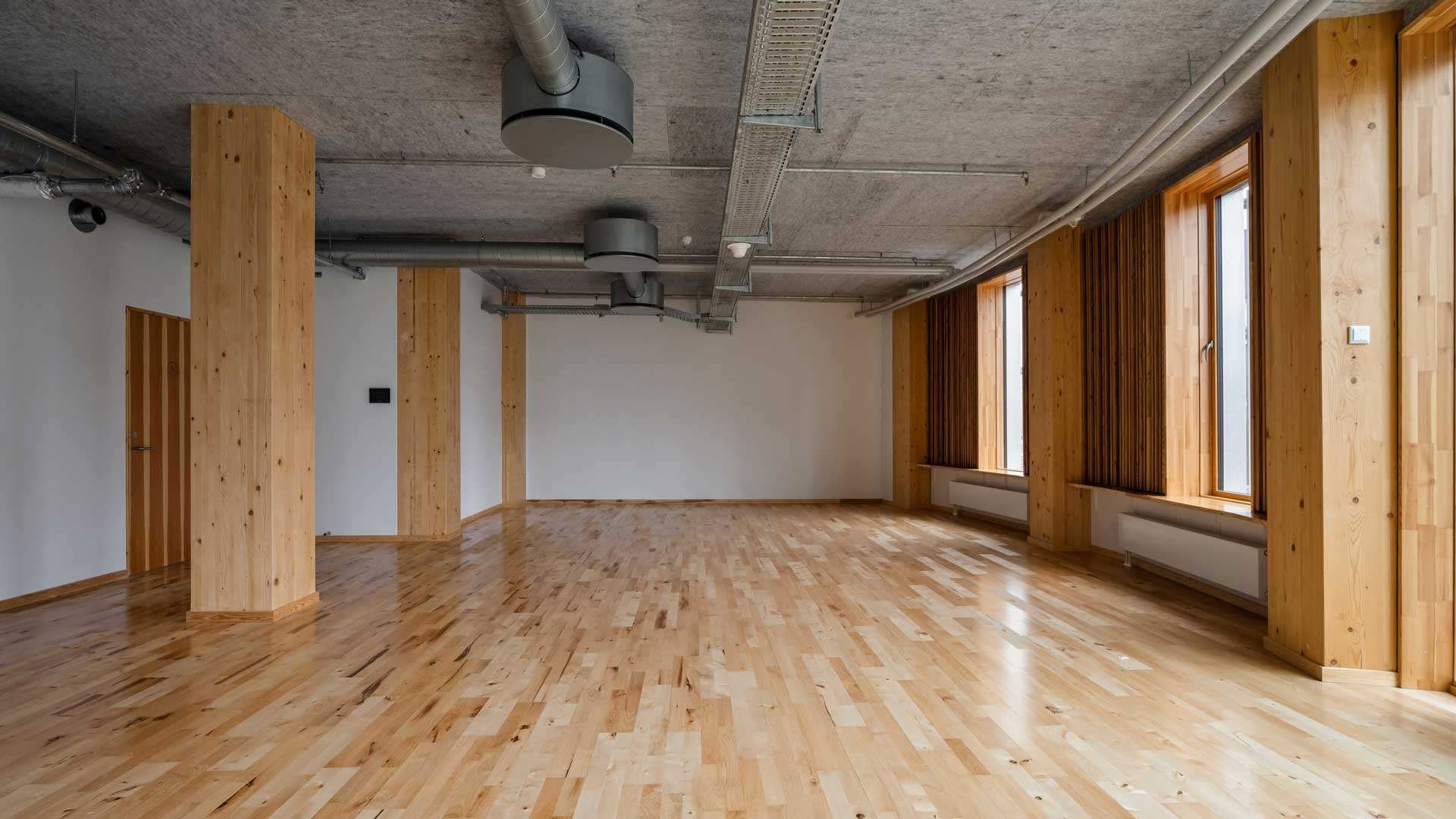 Lejemålet har eget tekøkken, toiletfaciliteter og er allerede fyldt med gode historier. For eksempel er akkustiklofterne lavet af genanvendte plastflasker og belysningen består af upcyclede armaturer fra Netto-butikker.