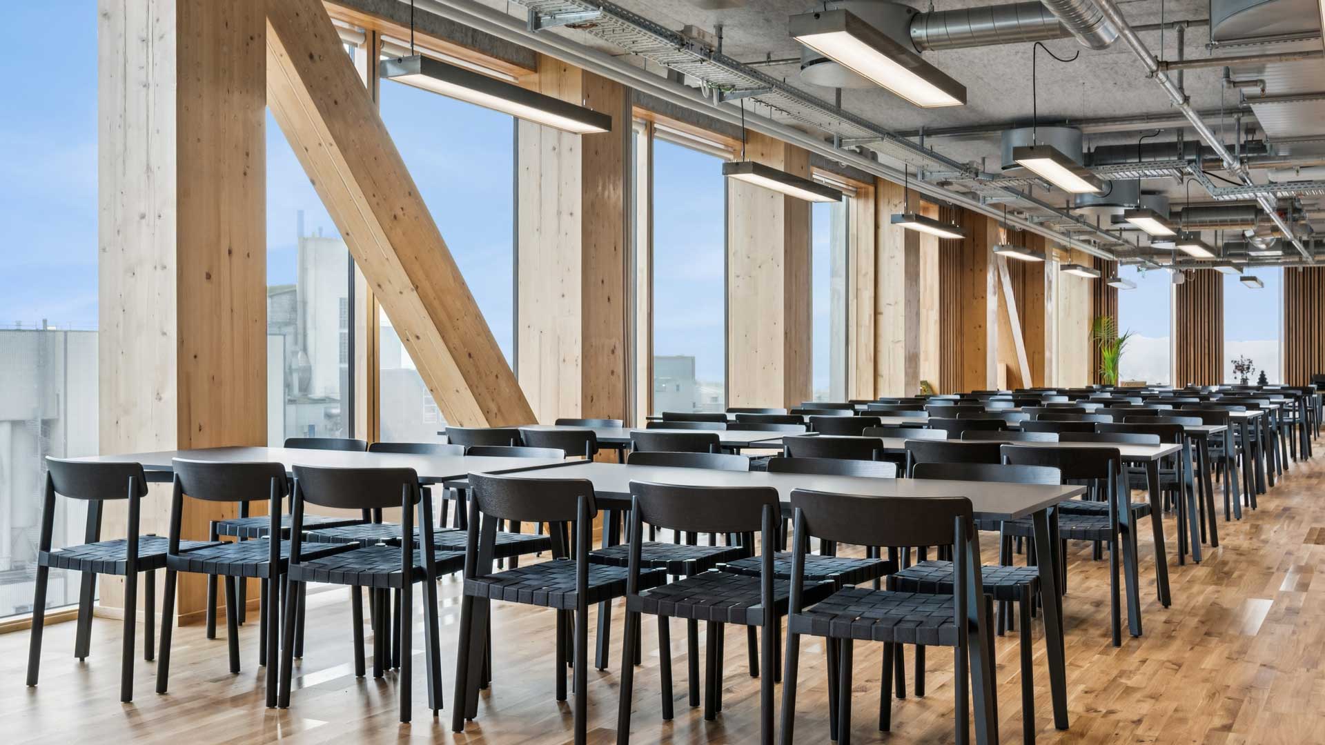 I de flotte lokaler på 7. og 8. sal kan I nyde jeres frokost. Her er det også muligt at afholde events og møder.