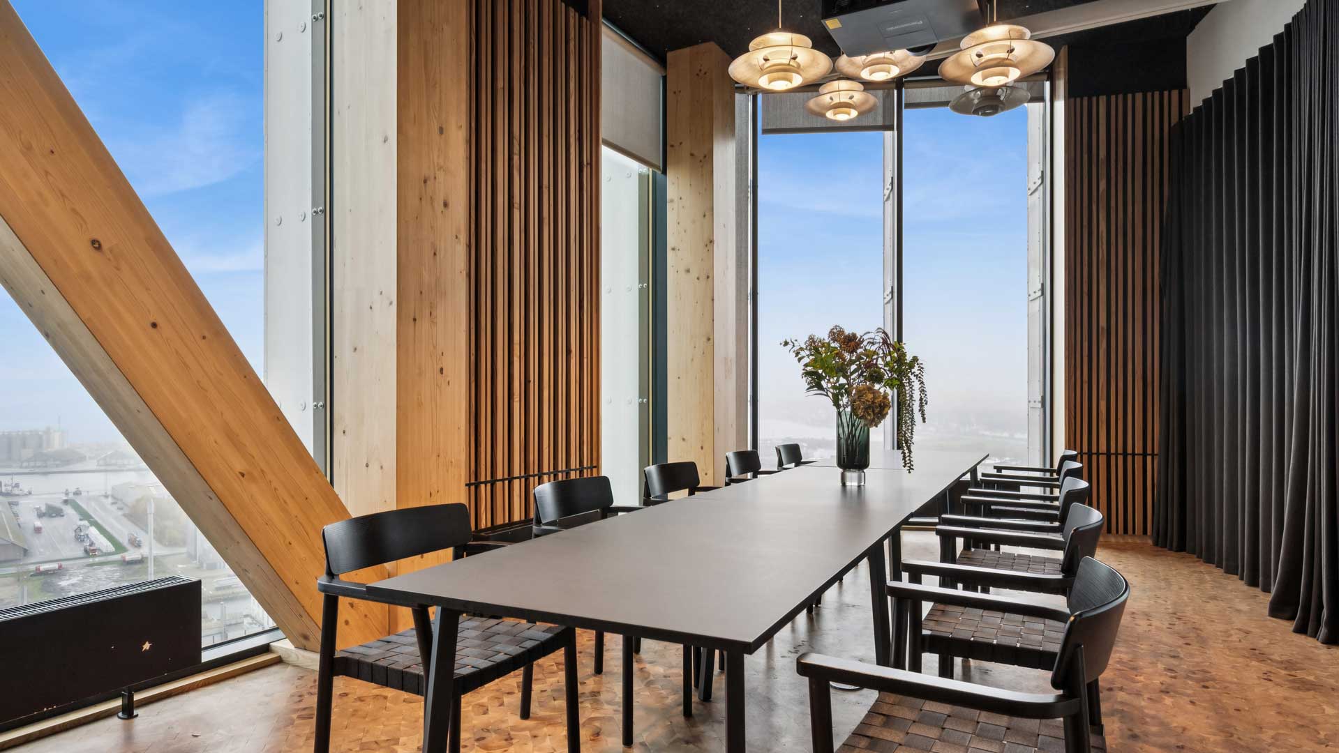 Restaurant Syv Ni Tretten holder til på 19. sal om aftenen. Om dagen er udsigtsloungen til jer og jeres gæster.
