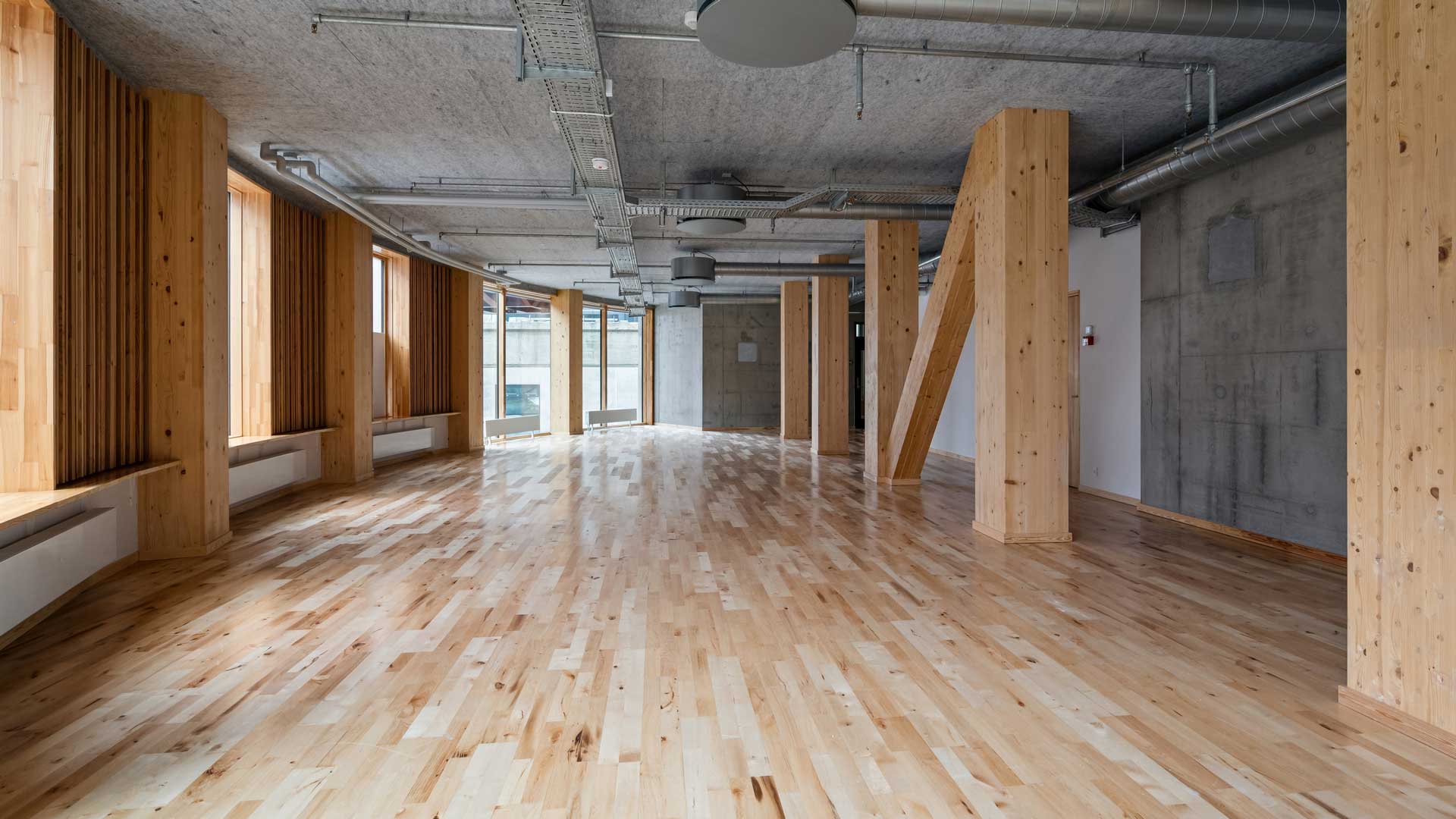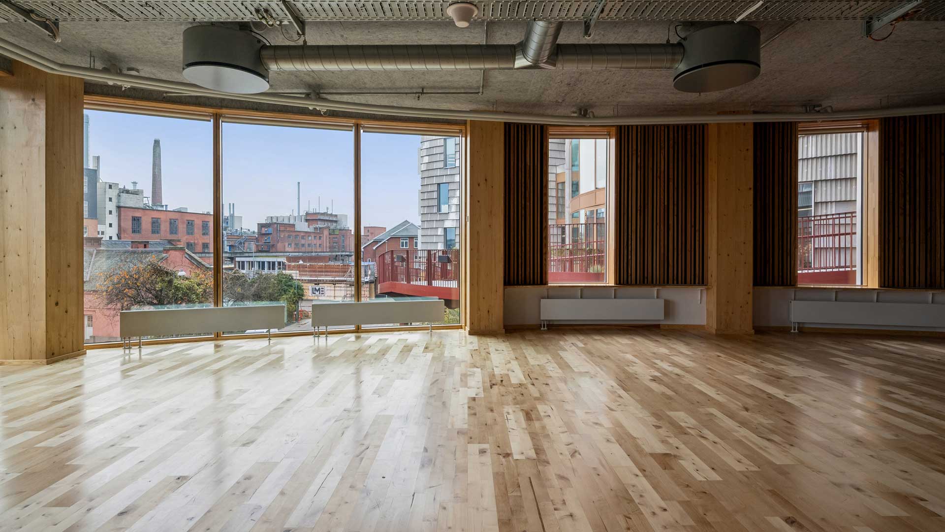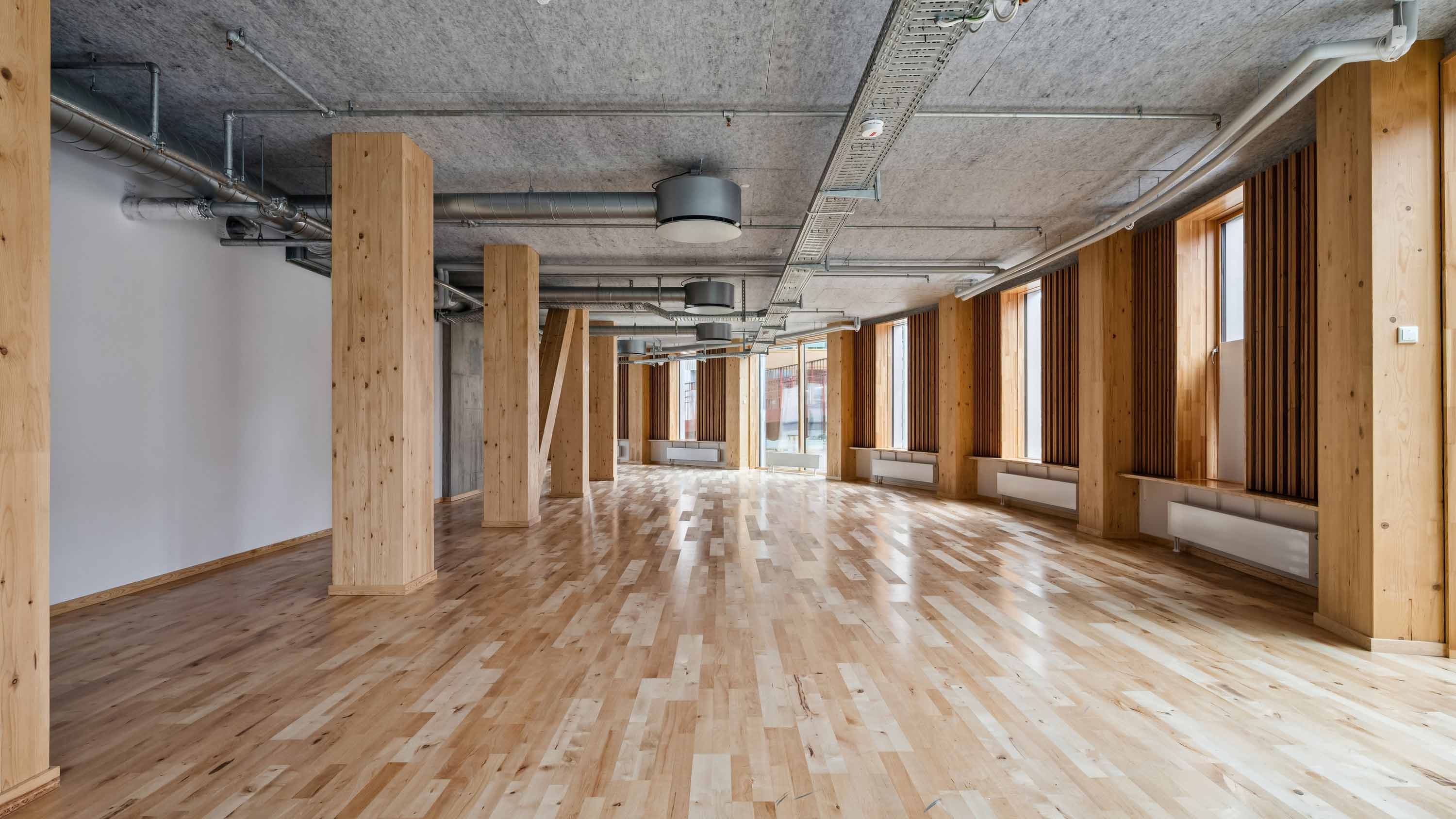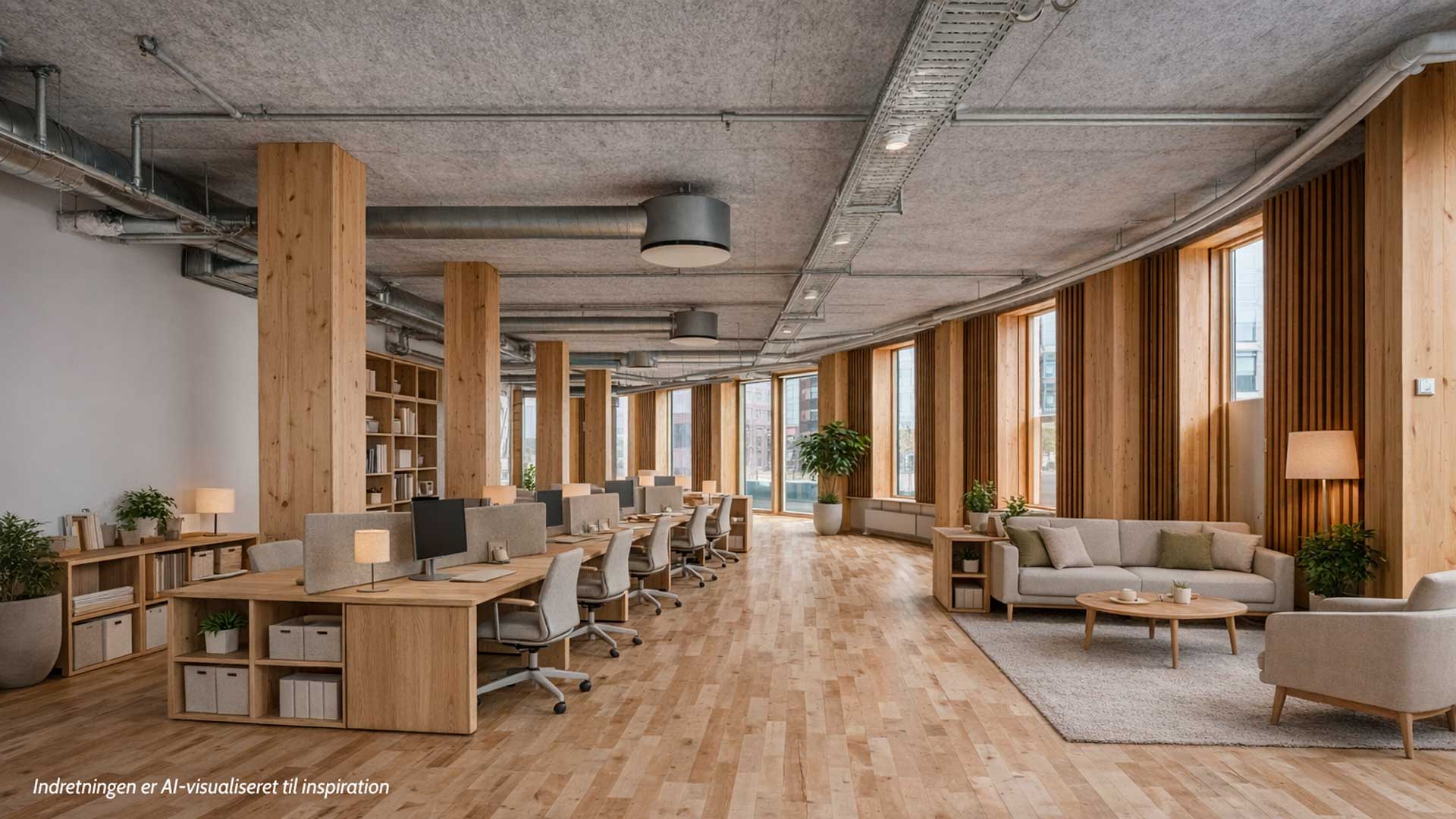 Her får jeres virksomhed en inspirerende base med karakteristiske bjælker og udsigt til byens udvikling.