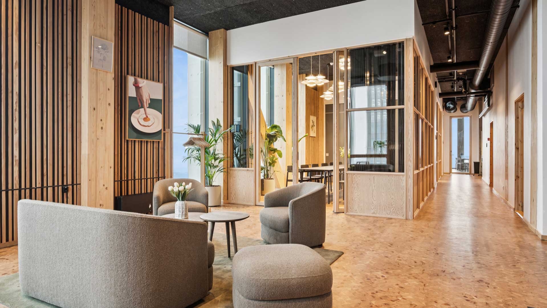Her bliver I en del af TRÆ – Part of The Union. Et ikonisk byggeri skabt med omtanke for både mennesker og materialer, der ikke uden grund er kåret som Årets bygning i Aarhusianernes Arkitekturpris 2025. Midt på Sydhavnen og med gennemtænkte fællesfaciliteter. Lige fra mødelokaler med wow-faktor til frokost tilberedt i husets eget køkken.