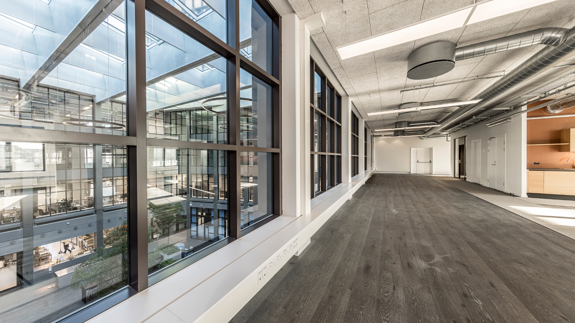 Ved ankomst til kontorhusets imponerende lobby tager vores barista godt imod dine gæster med en lækker kop kaffe mens de digitalt kan melde deres ankomst. Fra lobbyen er der desuden adgang til et lækkert brasserie samt indbydende mødecenter med stemningsfyldte mødelokaler.
